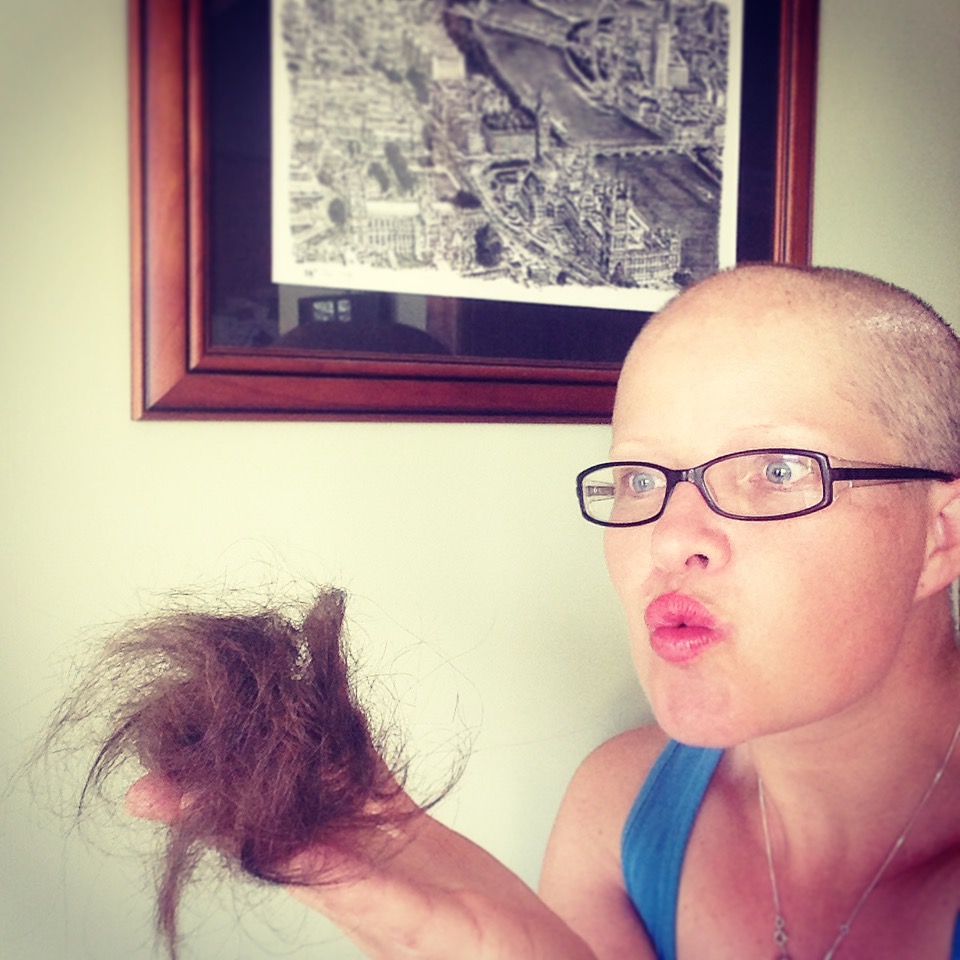 In retrospect, what a genius idea it was to document that process for the SHITTY TITTIE CHEMO CUT CHALLENGE. None of us had any inkling that so much of my hair would be killed off permanently by my life saving chemotherapy.