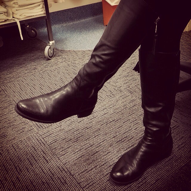 To celebrate the end of fourteen months of PTTIPOS, (that’s Post Treatment, Tamoxifen Induced, Psychotic Ovarian Syndrome, here is a picture of the brilliant Dr Claudia’s winter boots.